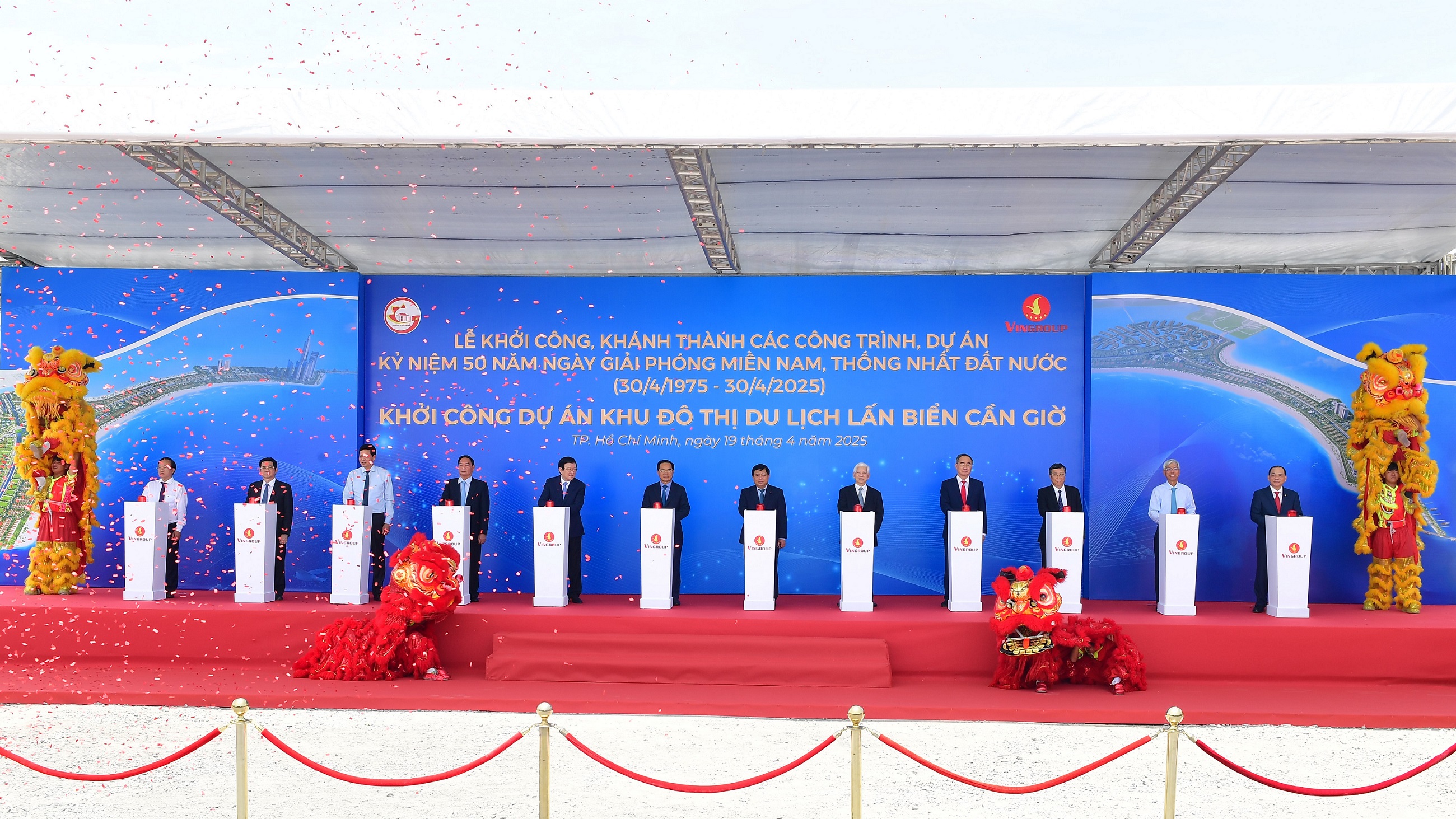 Lễ khởi công Dự án Khu đô thị du lịch lấn biển Cần Giờ nằm trong chương trình Khởi công, khánh thành các công trình, dự án chào mừng 50 năm Giải phóng miền Nam – Thống nhất đất nước được tổ chức đồng loạt trên cả nước trong sáng ngày 19/4/2025, dưới sự chỉ đạo trực tuyến của Ủy viên Bộ Chính trị, Thủ tướng Chính phủ Phạm Minh Chính.